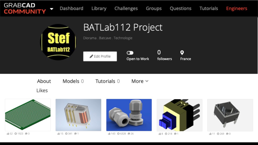 Les fichiers des modèles 3D utilisés lors de la conception préliminaire du poste HT/BT équipant la Batcave du projet BATLab112 sont téléchargés à partir de la plateforme GrabCAD.