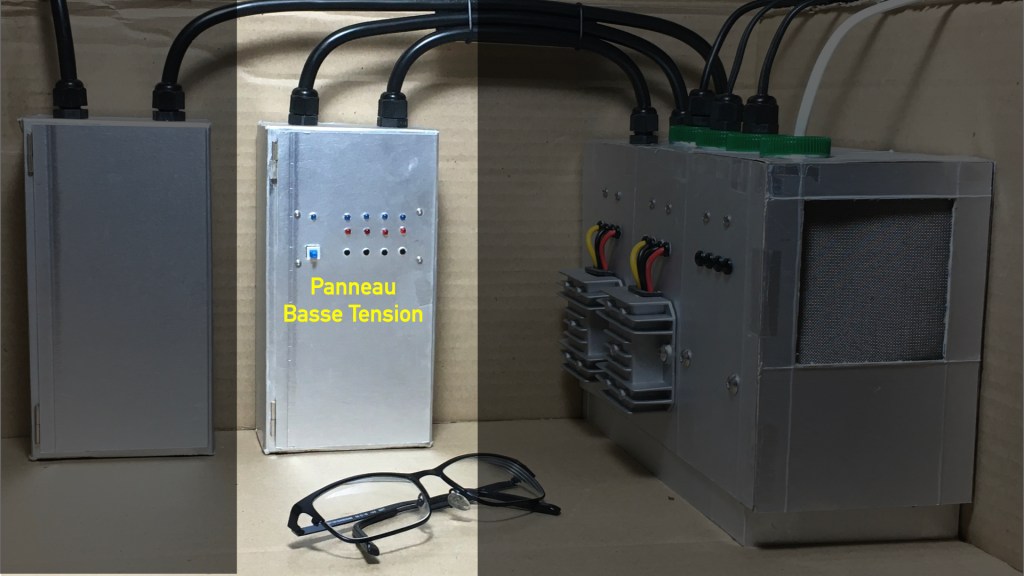 Ce premier prototype fonctionnel du poste électrique de la Batcave du projet BATLab112, a été réalisé suite à sa conception préliminaire, essentiellement destinée à modéliser les enveloppes mécaniques des différents éléments le composant.