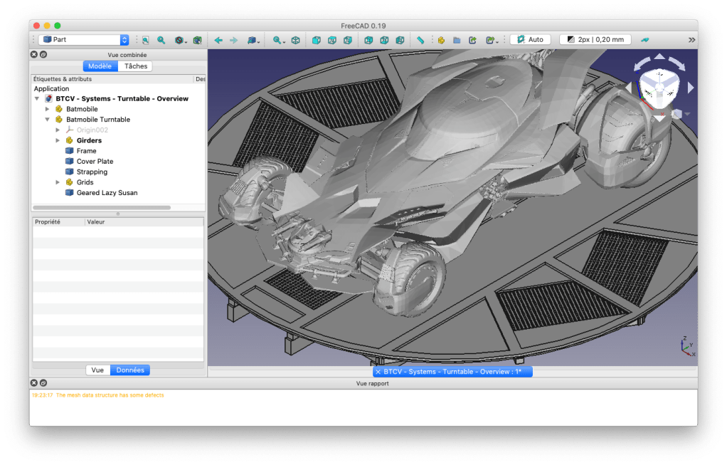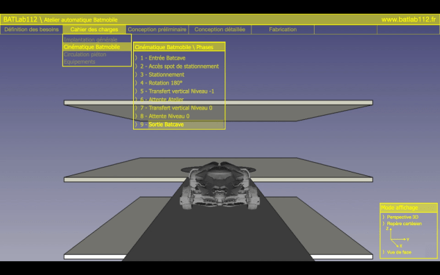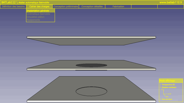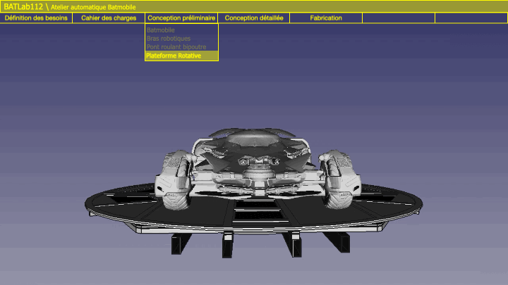 La modélisation de la plateforme rotative de la Batmobile équipant la Batcave du projet BATLab112 a été réalisé avec le logiciel FreeCad V0.19.