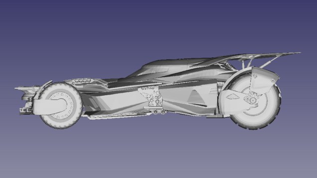 Pour des raisons d’efficacité et de rendu final, le modèle numérique de la Batmobile n’a pas été crée par le projet BATLab112, même si cette opération représentait un exercice intéressant. Obtenir un résultat esthétiquement satisfaisant aurait était très chronophage, préjudiciable à l’avancé du projet. De nombreux modèles de cette Batmobile sont présents sur internet. Cependant, même pour les modèles payants, la très grande majorité d’entre eux présentent plusieurs défauts.