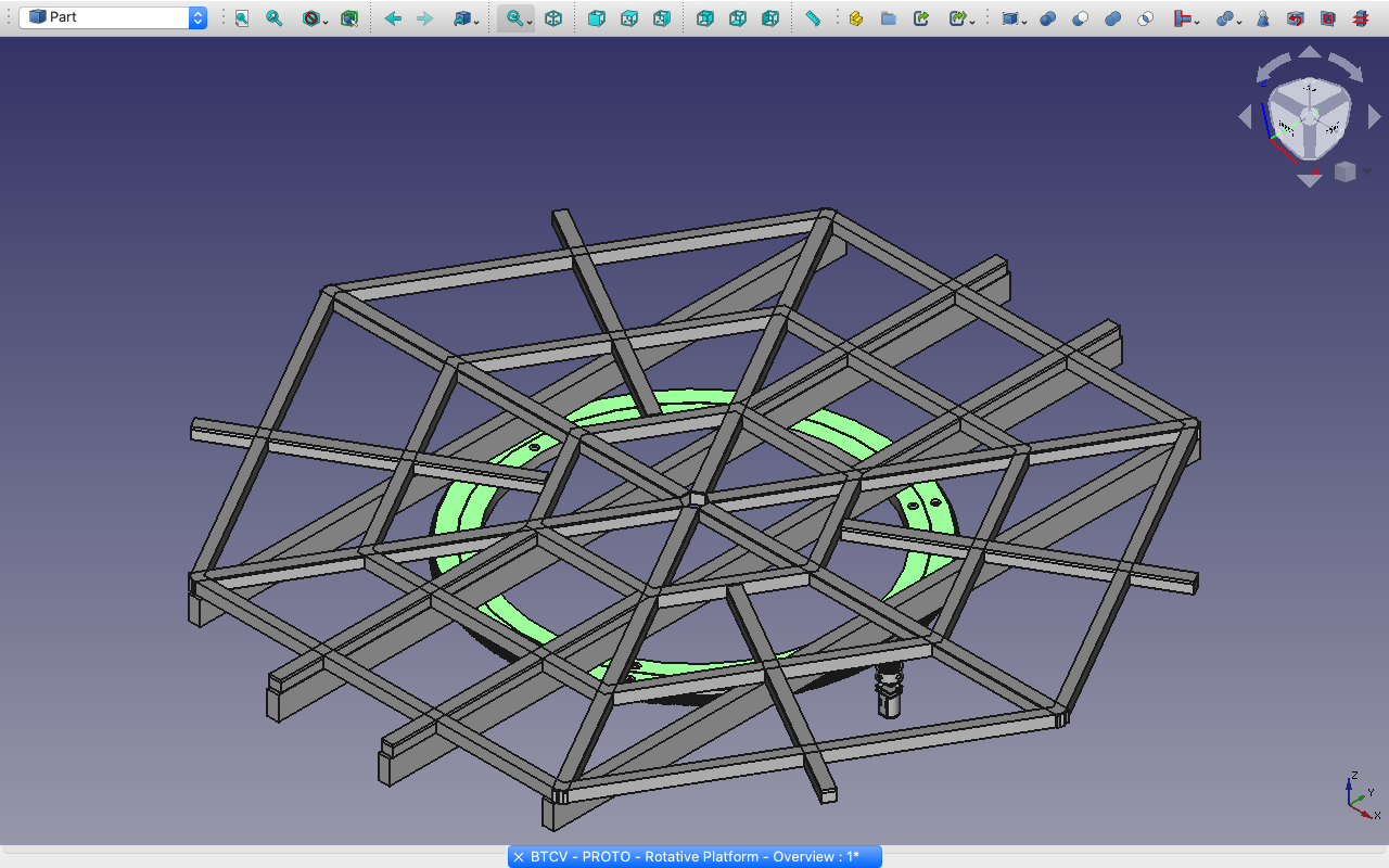 La réalisation de ce premier prototype de la plateforme rotative de la Batcave du projet BATLab112 poursuit plusieurs objectifs. Il s’agit dans un premier temps de valider le design issu de la conception préliminaire et dans un deuxième temps de tester la motorisation de ce système.