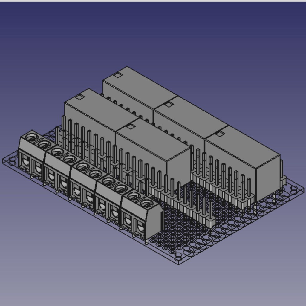 La carte relais (à gauche) créée pour le projet BATLab112. Ces relais sont utilisés dans les commandes en logique câblée ; auto maintien.