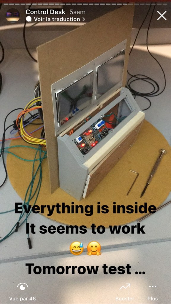 La profondeur du pupitre est trop petite. Conformément à la modélisation 3D, cette dimension de 50mm est suffisante pour contenir les deux cartes électroniques. Cependant, le volume intérieur restant est trop juste pour contenir l’ensemble du câblage associé, rendant ainsi la phase de câblage difficile.