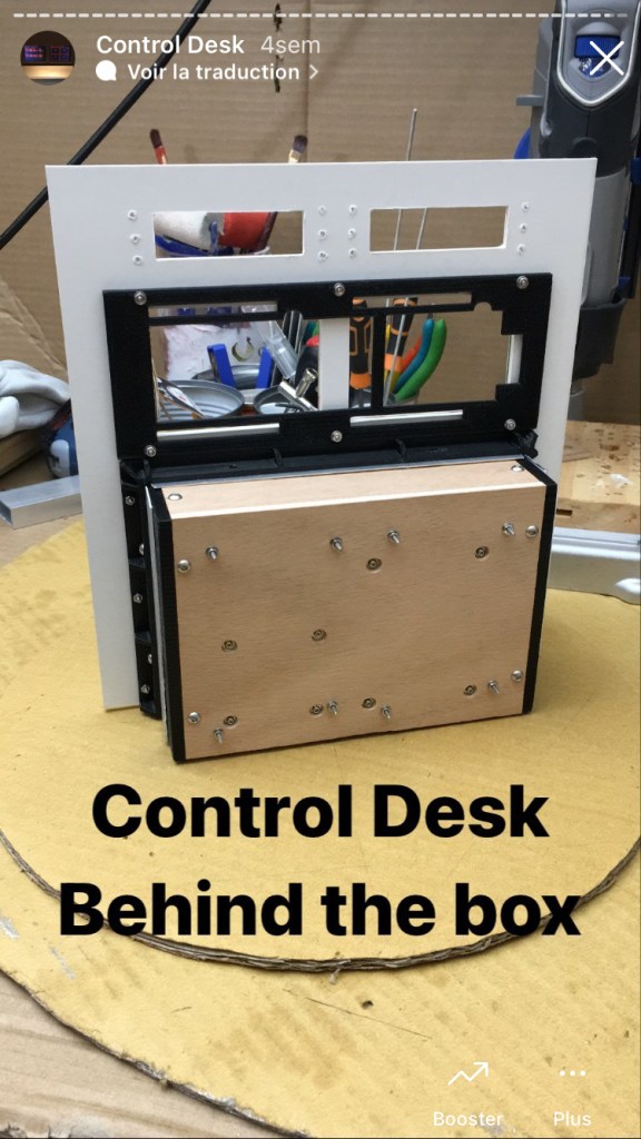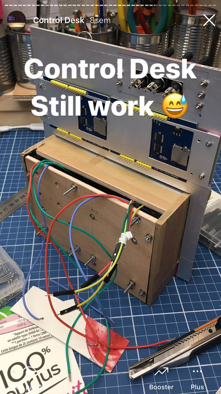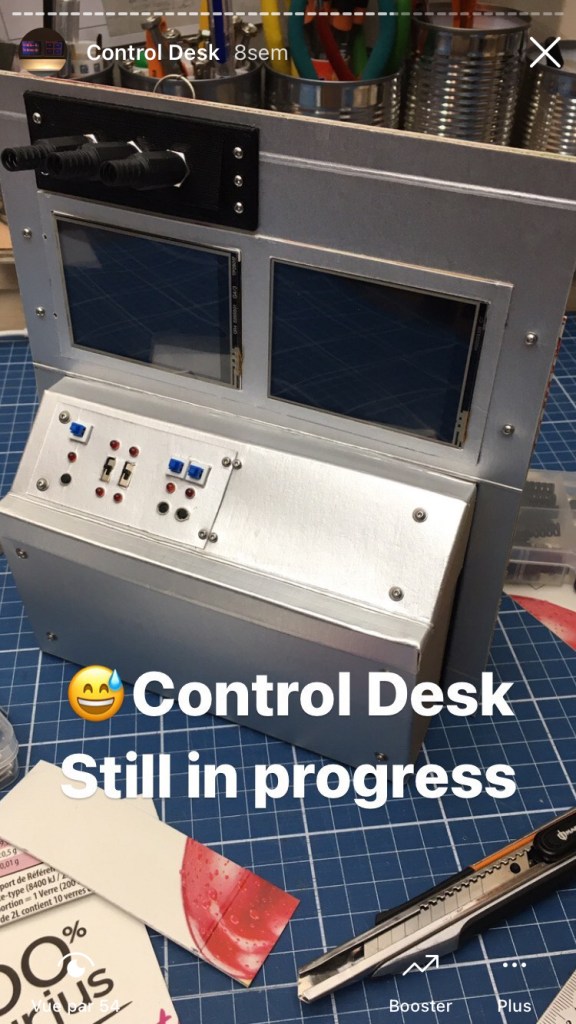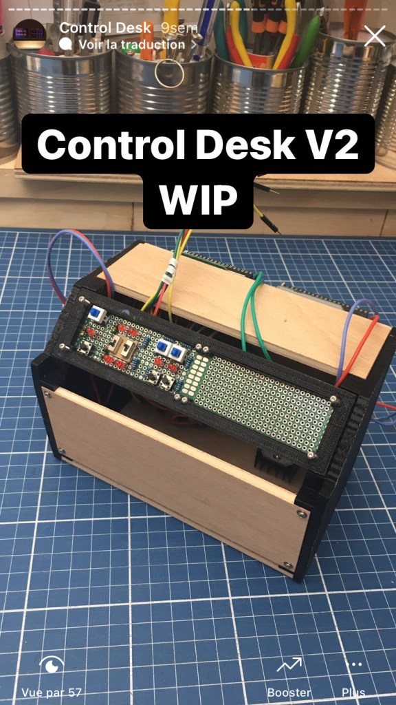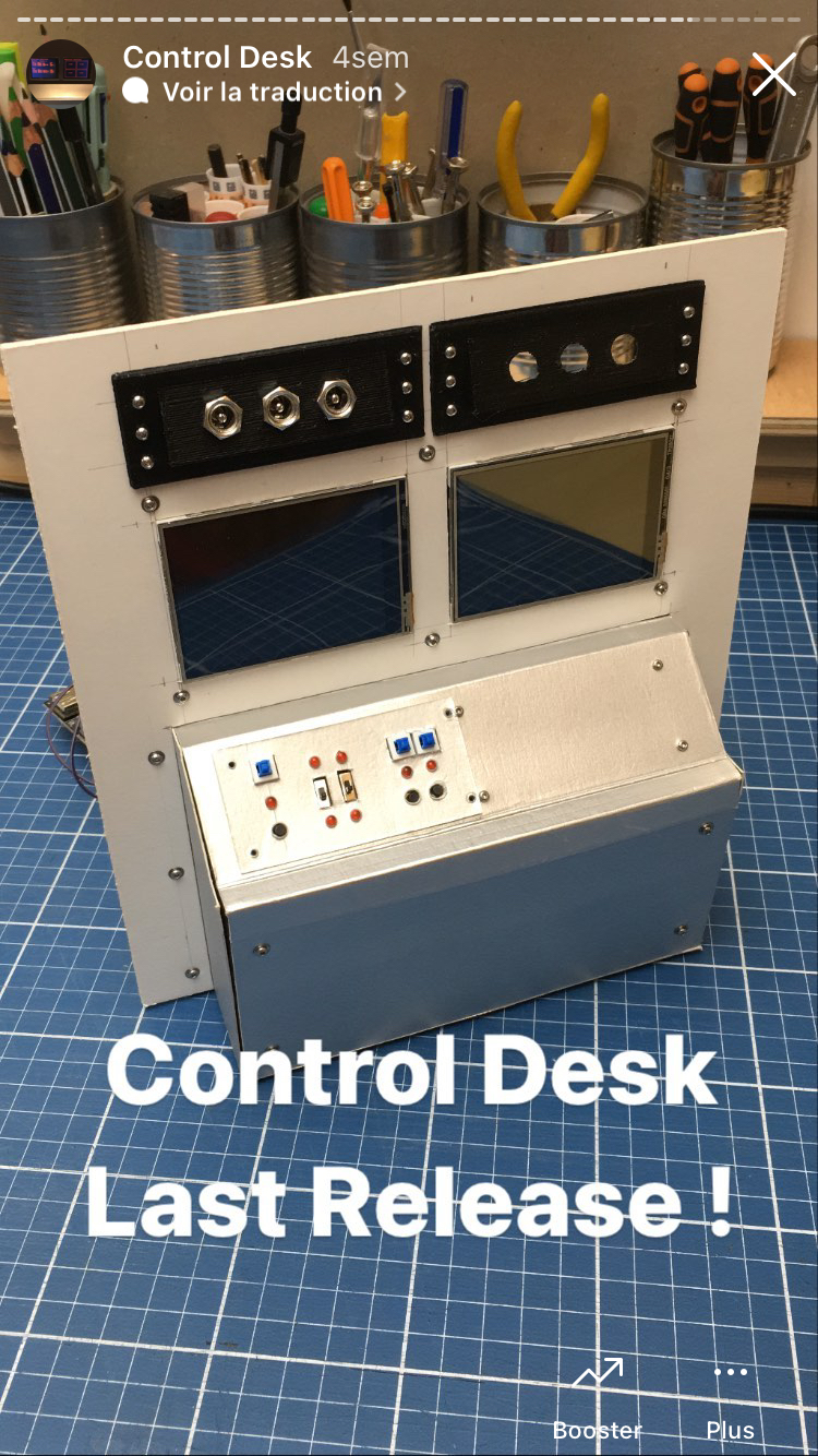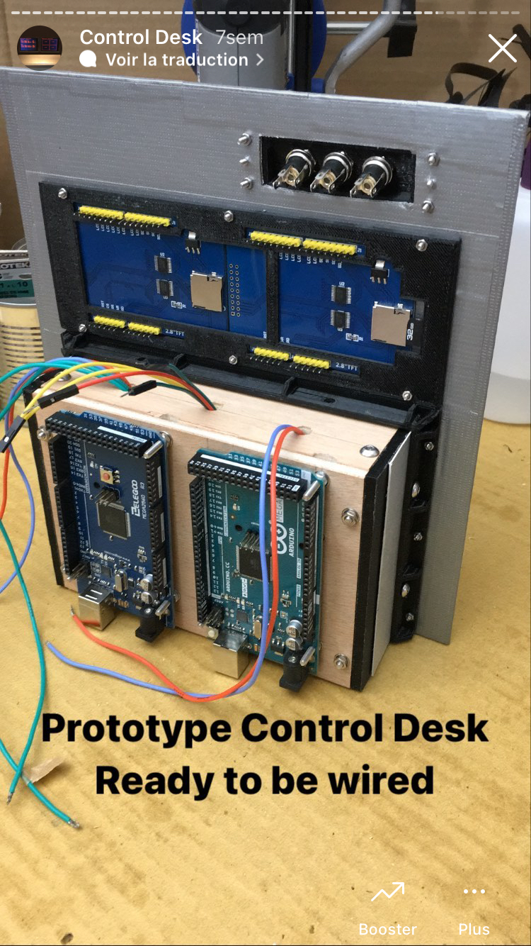Le design de ce premier modèle de la console de commande est satisfaisante. Les principes d’assemblages des différents sous-ensembles sont fonctionnels. L’électronique de commande ainsi que la gestion de l’affichage des commandes et leur l’horodatage par les carte Arduino est en cours de codage. L’esthétique générale de cette version est plutôt satisfaisante même si certains détails sont à améliorer. Il reste encore à finaliser et valider la programmation.