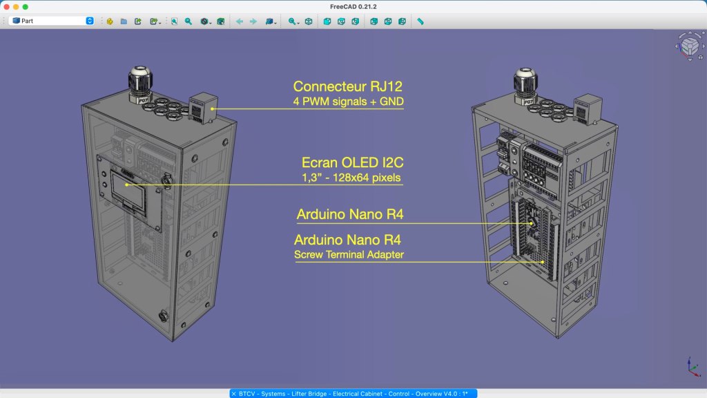 Screenshot : Conception de l’armoire électrique de contrôle sur FreeCAD