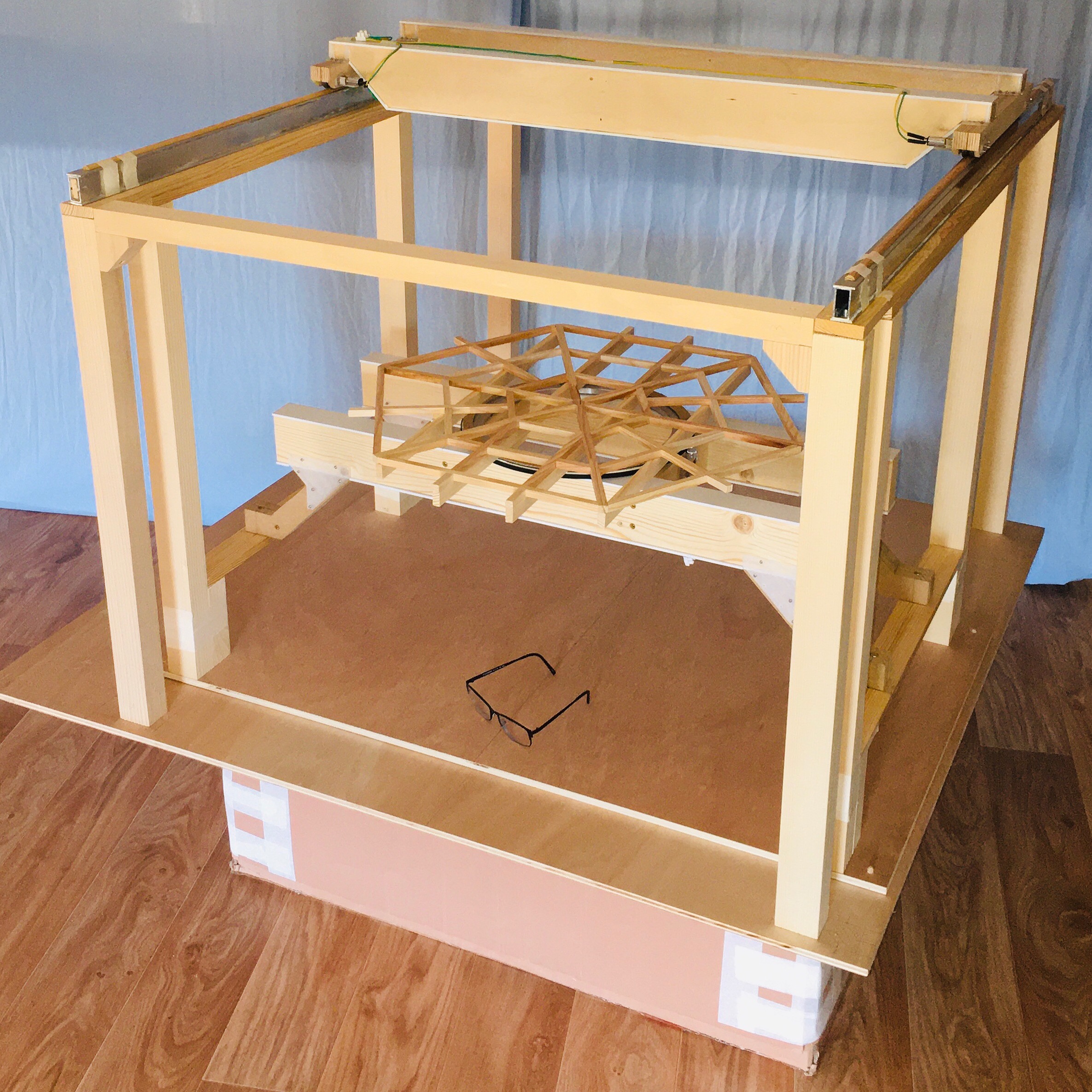 L’architecture de la Batcave du diorama est imposée d’une part par les dimensions maximales fixées par le cahier des charges, et d’autre part, la logique fonctionnelle dans l’intégration des équipements industriels. De plus, cette structure doit être démontable pour en faciliter le transport.