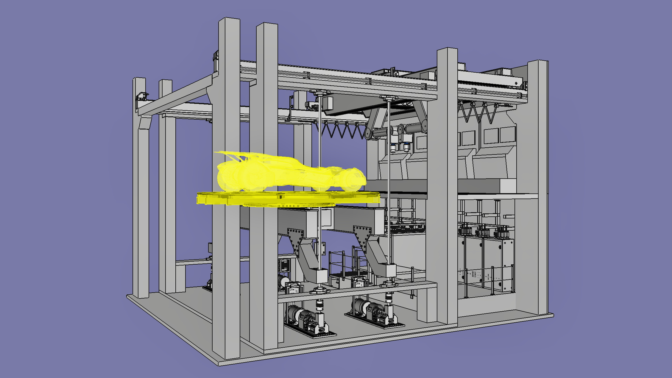 Au-delà de sa fonction rotative, la plateforme participe également au mécanisme de translation verticale qui permet d’acheminer la Batmobile vers l’atelier automatique situé à un niveau inférieur. Cette caractéristique constitue une spécificité notable du projet : la plateforme n’est pas uniquement un élément mobile en rotation, mais un composant intégré à un système plus vaste d’élévation. Elle doit ainsi répondre à des exigences de stabilité, d’alignement et de résistance adaptées à cette fonction portante.