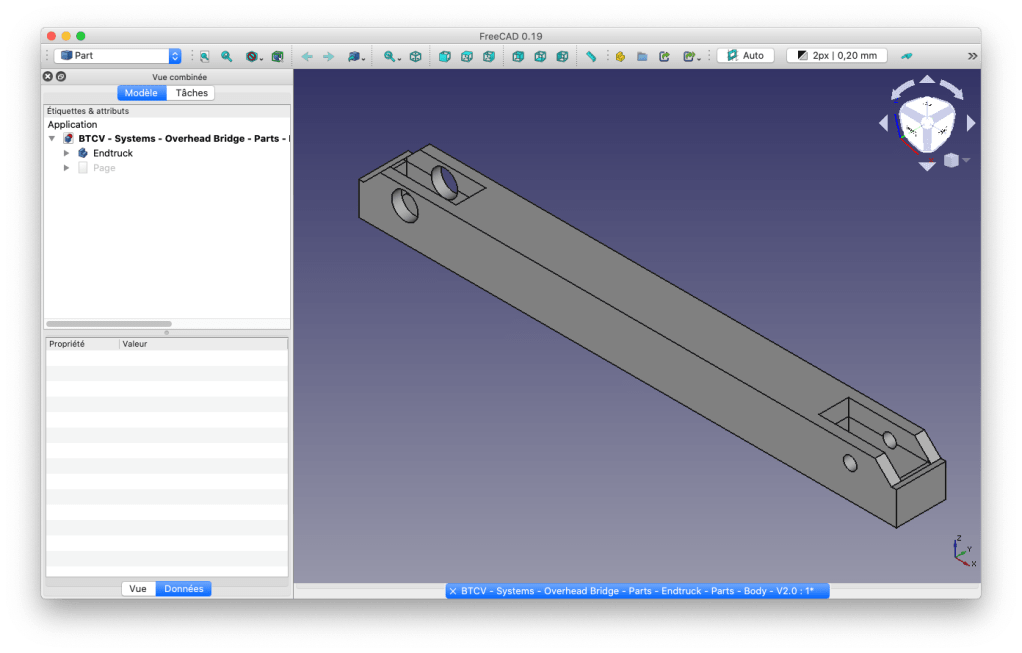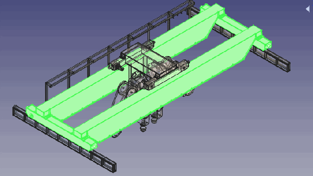 La modélisation du pont roulant bipoutre équipant la Batcave du projet BATLab112 a été réalisé avec le logiciel FreeCad V0.19.