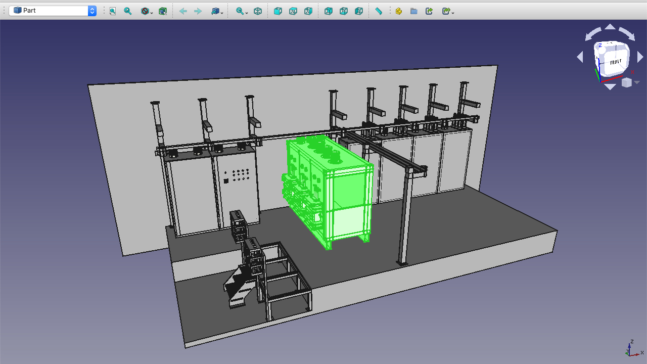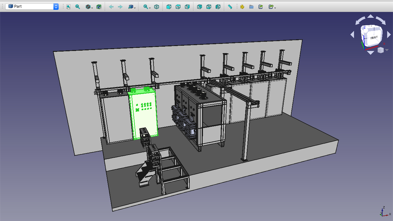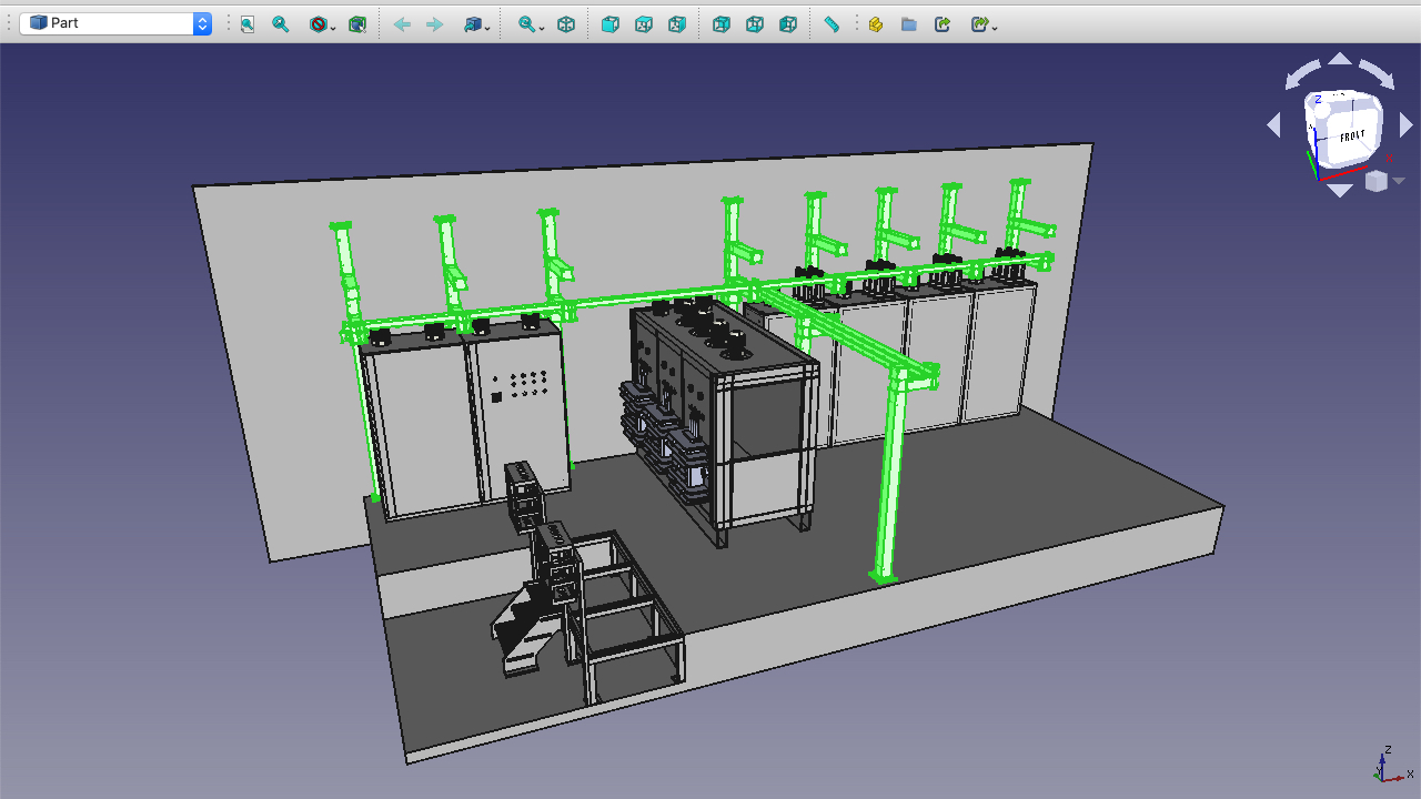 La modélisation 3D du réseau électrique du diorama de la Batcave du projet BATLab112 a été réalisé avec le logiciel FreeCAD.