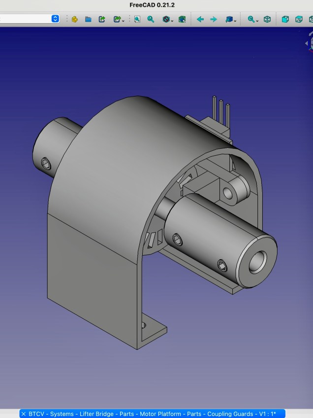 L’article précédent celui-ci, présente la conception détaillée de la plateforme de motorisation des axes du pont élévateur. Cet article se focalise sur le design des composants de la plateforme et leurs dimensionnement pour aboutir à leurs modélisation 3D sur FreeCAD. Cette modélisation permet notamment de s’assurer de la bonne intégration du design général des plateformes de motorisation dans le diorama de la Batcave.