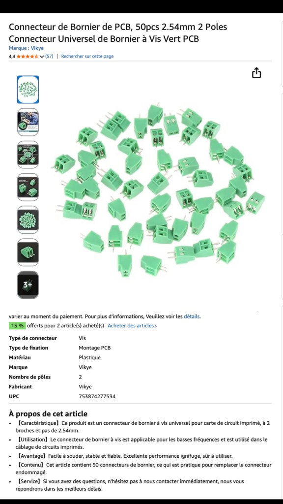 Le sourcing des composants actifs et des pièces mécaniques est réalisé à partir d’une plateforme de ventes en ligne. Ce choix est essentiellement dicté par un objectif de limiter le nombre de fournisseur, mais aussi de permettre une centralisation des commandes et ainsi d’envisager des économies d’échelle, notamment sur les frais de livraison.