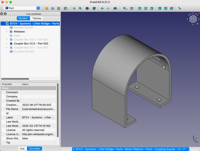 Cet article intervient après un changement d’environnement technique autorisé par le changement d’ordinateur. A présent la version 0.21.2 de FreeCAD est utilisée pour une meilleure définition de la conception du projet BATLab112.