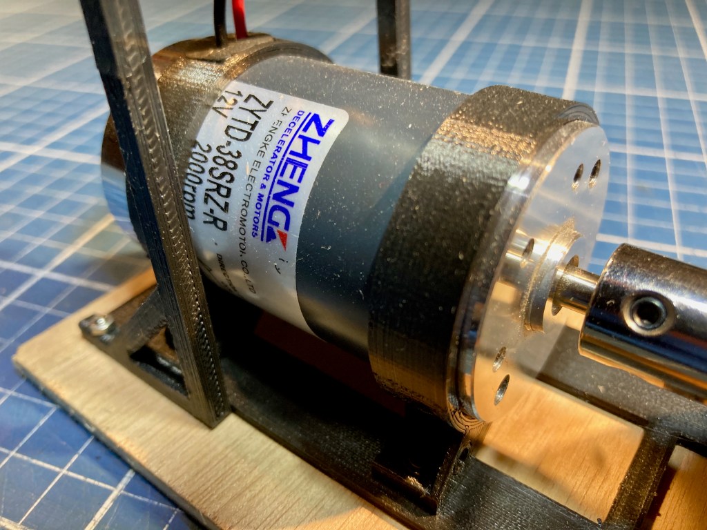 Ce modèle de moteur est sélectionné pour ses dimensions mécaniques compatibles avec le rendu réaliste imposé par l’échelle 1/12 du diorama, mais aussi pour ses caractéristiques électriques garantissant le bon fonctionnement final du système. La tension d’alimentation en 12V, associée à une vitesse de rotation nominale élevée, laissent envisager un couple mécanique satisfaisant après réduction de la vitesse de rotation.