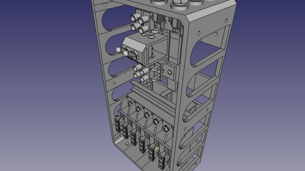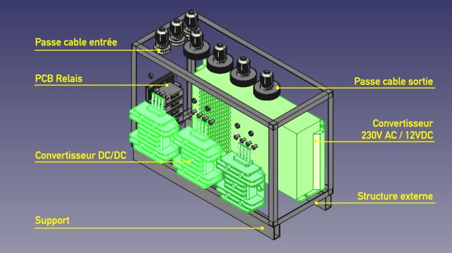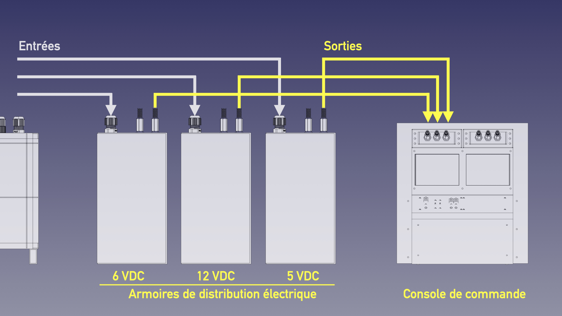 L’implantation de cette électronique au sein des deux armoires électriques est conservée. Les dimensions mécaniques de ces armoires demeurent inchangées, afin de maintenir la cohérence avec les autres ensembles électriques similaires du projet.