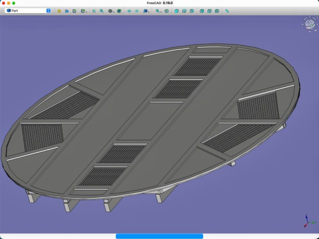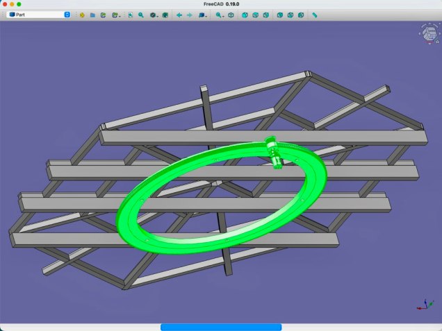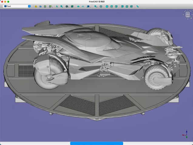 La modélisation de la plateforme rotative de la Batmobile équipant la Batcave du projet BATLab112 a été réalisé avec le logiciel FreeCad V0.19.